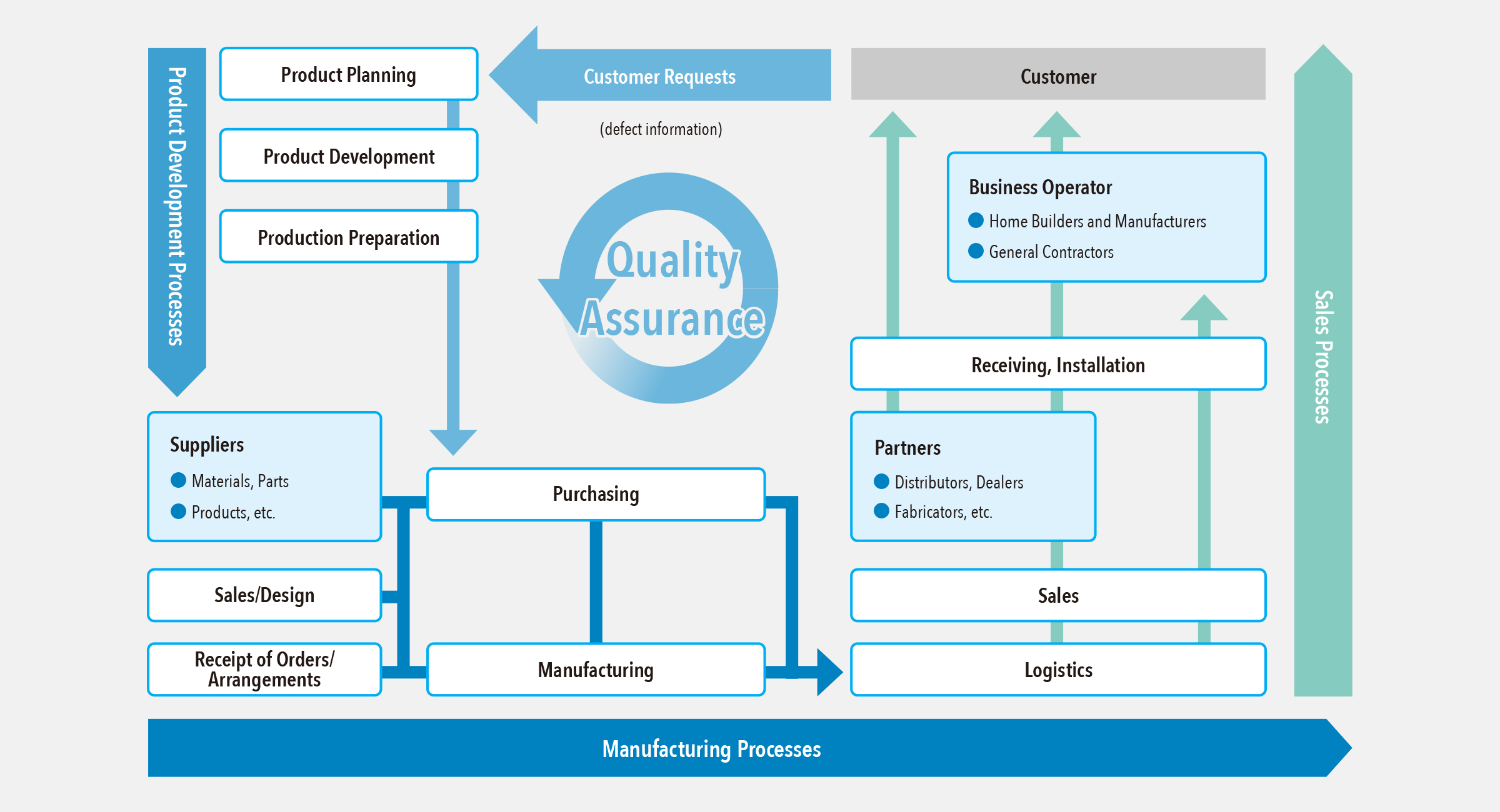 In order to contribute to establishing a culture of product safety as promoted by the Ministry of Economy, Trade and Industry as well as to bring the entire company together and work as one to actively implement product safety efforts so that we can provide our customers with safety and security, YKK AP adopted the YKK AP Product Safety Basic Policy, comprised of the Product Safety Pledge and Product Safety Action Guidelines, at its Board of Directors meeting on November 21, 2008.