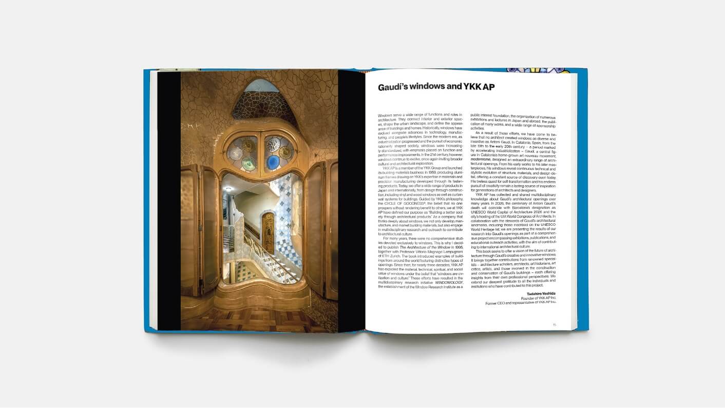 Como parte de su compromiso continuo con la cultura arquitectónica y la contribución social, YKK AP —el fabricante japonés de ventanas guiado por el propósito "Construimos una sociedad mejor a través de productos arquitectónicos"— presenta Gaudí: Ventanas al Futuro. Se trata de un proyecto que explora los diseños de ventanas del arquitecto Antoni Gaudí desde múltiples perspectivas, junto con investigadores y especialistas, mediante una colaboración especial con varios sitios del Patrimonio Mundial de la UNESCO y monumentos diseñados por Gaudí.