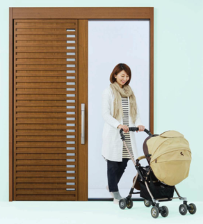 また、引戸用として業界で初めて標準搭載したハンドル一体型電気錠「スマートコントロールキー」の機能性、住宅外観の多様なニーズにお応え出来る木調枠や豊富な扉デザインなどのデザイン性、また高い断熱性についても評価されています。